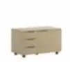 Didelis mobilus medinis stalčių blokas su atvira lentyna ir trimis stalčiais ant ratukų šiuolaikiniame biure