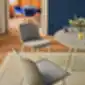 Kėdė su apmušta sėdyne ir paprasta keturių kojų baze (metalinė arba medinė), užtikrinanti išskirtinį komfortą bet kokiame kontekste. Apmušta pagalvėlė leidžia vartotojui atsilošti ir atsipalaiduoti.